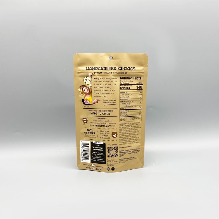 餅干袋采用自立拉鏈袋設(shè)計(jì),集時(shí)尚與實(shí)用于一身